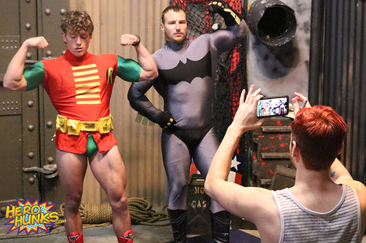 An age of shadow vs. light, good vs. bad, hero vs. villain. This is Hero Hunks, where impossibly muscular bodies flex and pose in suits of Lycra and spandex, stretched tightly across muscular backs, chests, thighs, and more. Hero Hunks offers scheming villains, daring escapes, bitter rivalries, strength, domination, superpowers being used and abused, and, of course, heroes fighting for what’s right.