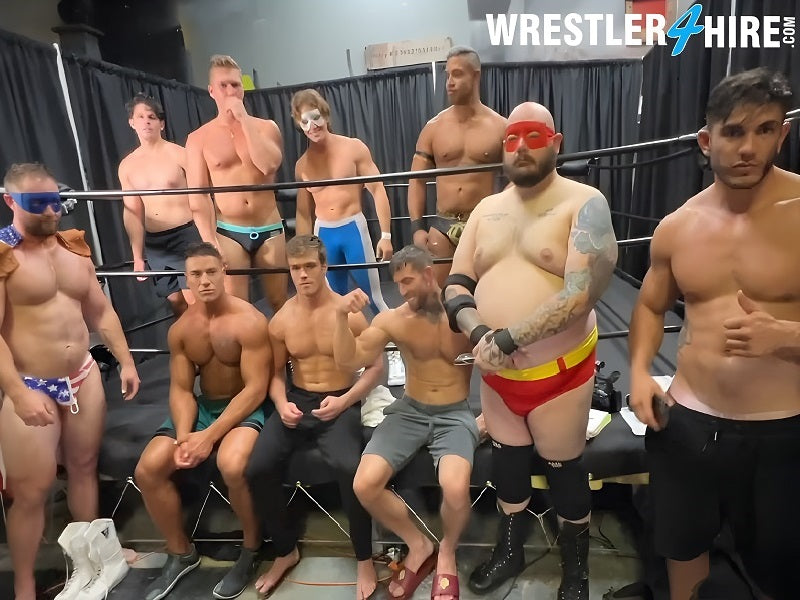 What kind of backstage antics go on at a Wrestler4Hire/Hero Hunks shoot?
