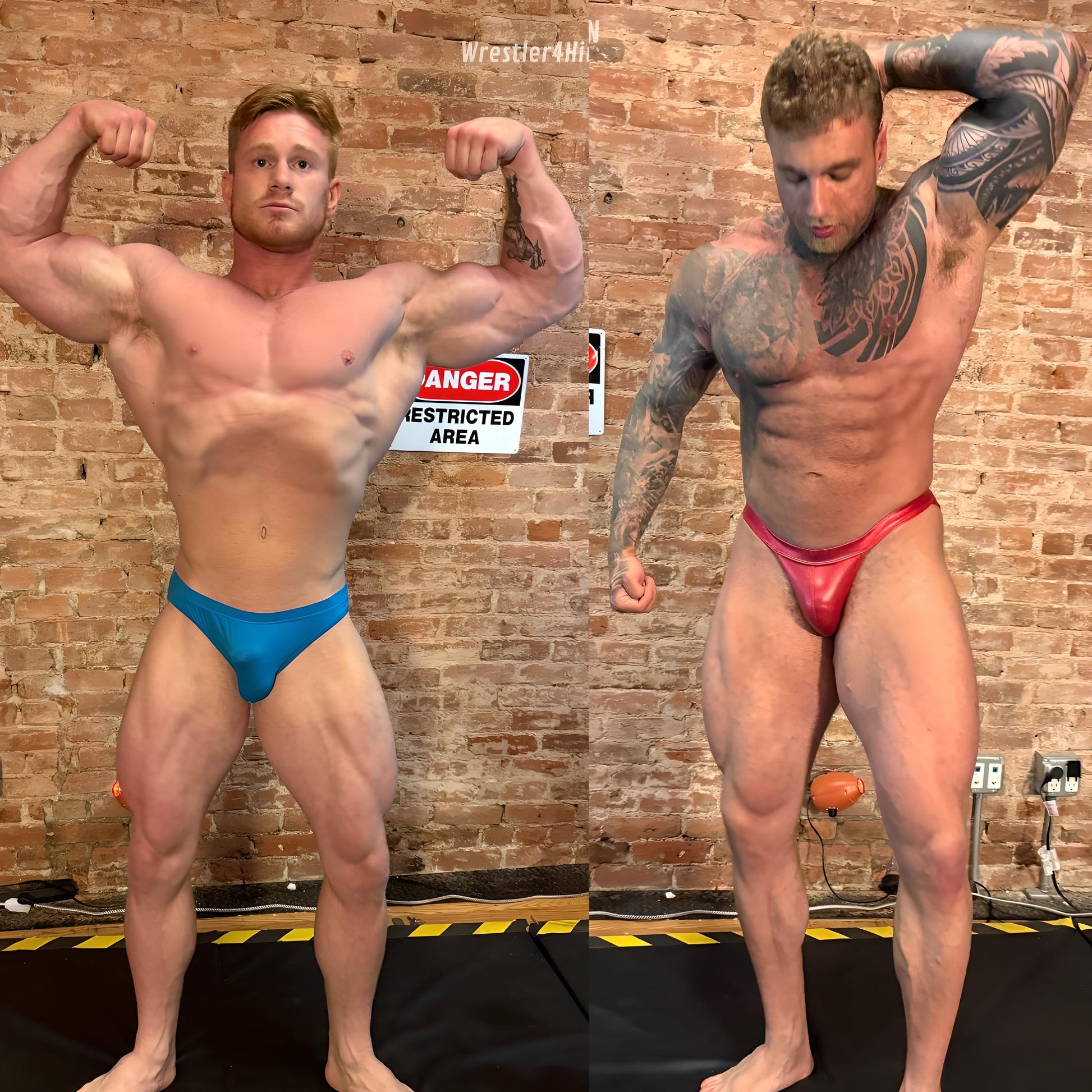 These two don’t just wrestle — they collide, slam, and grind against each other with a primal urgency that blurs the line between combat and foreplay. Their double-leg and single-leg takedowns hit the mat with bone-rattling force. Takedowns lead to cradles, clinched fists rain down punches on chiseled abs and powerful pecs, while bulges grind and swell with every twist.
