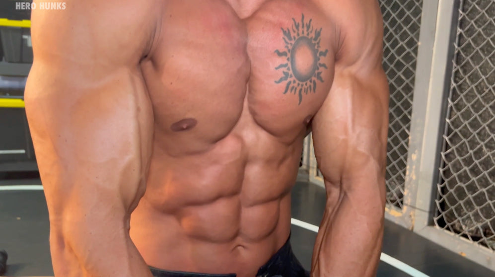 Since Bronco is ripped and jacked for a bodybuilding contest we get to enjoy the fruits of his labor. I love this clean shaven, ripped Bronco so we can se that handsome face and that massively muscled and ripped body. Now put that hotness in a Gladiator costume with some great holds showing it all off - worth every penny! The best part was the Creeper straddling him and slamming his abs and squeezing those massive pecs - WOOF! Just wish it went on a bit longer. While Bronco is in this contest shape I am hoping you can squeeze all that muscle into a Superman costume and film a match. :-)