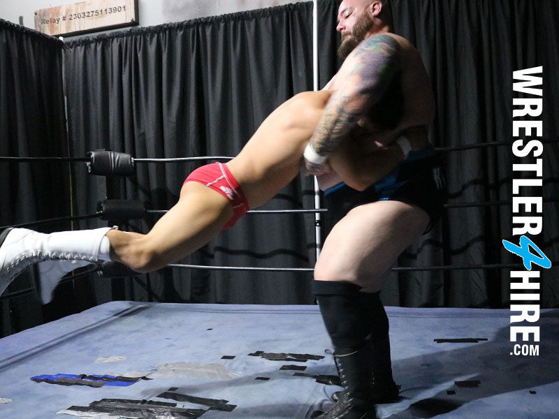 You would be forgiven if you looked at the opening shots of this match and thought to yourself, "Oh no! This is not going to go well for Javier!". Javier the Hunk is across the ring from one of the biggest wrestlers in the W4H stable- Dr. Maniacal, and it is not long before the Dr. shows just how much outweighing a person in the ring gives one an advantage. And Maniacal does outweigh Javier - by A LOT! Javier does his best to try and mount some kind of offense at certain points, but the weight and size odds are just not in his favor, and it appears he will be in for along night.