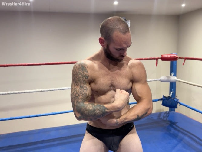 The air is thick with tension and sweat as the final chapter of this sizzling trilogy begins. Chace LaChance lies sprawled on the mat, gasping for air, his body glistening. Standing above him, Travis Maverick strikes a cocky pose, every muscle flexing in arrogant perfection, his confidence oozing with dominance.