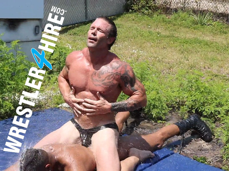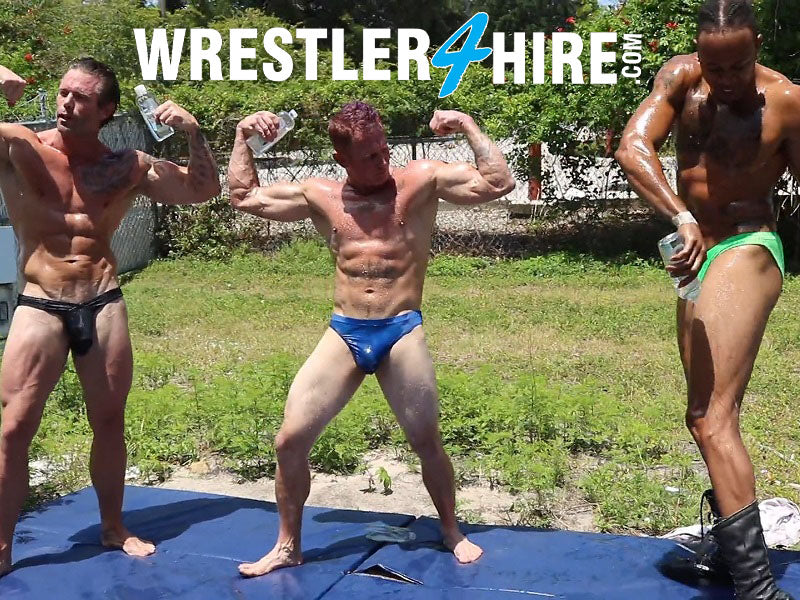 Nasty Nate and Tempo are on the mat for their first oil match. Both seem a bit tenuous at first, but as Cameron (behind the camera) talks them through it, they both seem to become more at ease with what awaits them. When Cameron then instructs Joey Nux to get involved in the match as well, you just know that action has been turned up a notch. If there is one thing that Joey likes better than putting a newbie through their paces, it is putting TWO newbies through their paces.